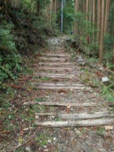 登山口付近の坂です。この坂を上っていくと登山道に入っていきます。