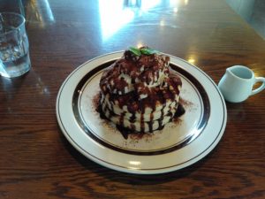 ティラミスショコラパンケーキは、個人的に最もおススメのパンケーキで、パンケーキの上がティラミスのようになっているパンケーキです。